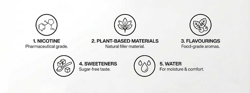 Oral nicotine pouches are small, pre portioned sachets placed under the upper lip. They contain nicotine, flavourings, plant based fibres and other food grade ingredients, but contain no tobacco leaf. Pouches have less toxicants compared to vapes and cigarettes. making them a suitable alternative.